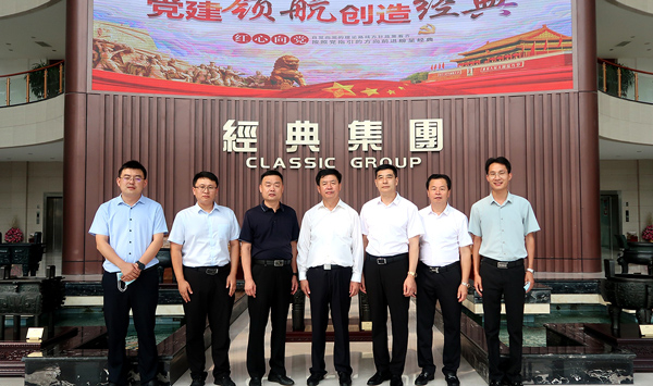 8月1日,濟寧市兗州區委書記王慶到經典集團調研生產運營和省重大項目建設有關情況。兗州區委常委、區委辦公室主任龔標,副區長孫恒民,經典集團董事長苗樹文,總經理杜福生等陪同調研。