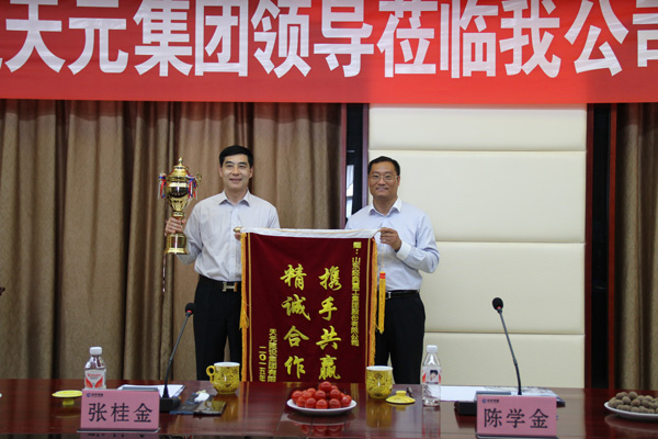 5月14日,天元集團旗下山東天元工業發展有限公司董事長張桂金率領管理、技術團隊一行30余人到經典集團參觀交流。經典集團董事長苗樹文,總經理杜福生,副總經理鄭健康,生產總經理王忠策,工會主席高建國,營銷部經理周霞,生產部經理李永苓,生產二部部長孔德旺等陪同。