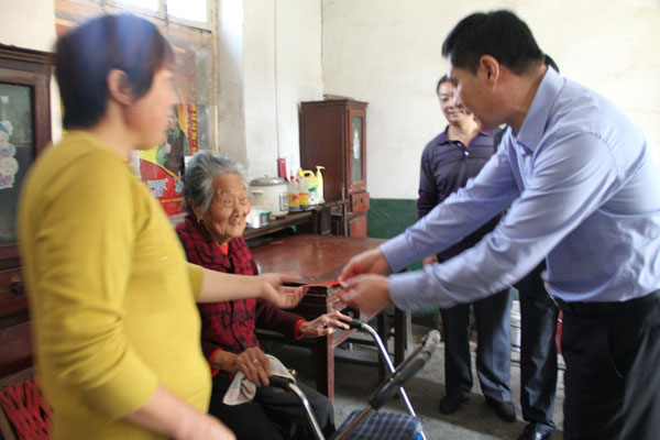 在漕河鎮(zhèn)后邴村特困戶家中,初部長和苗董事長都噓寒問暖,與老人們親切交談,關(guān)切地詢問他們的生活和身體情況,了解老人們的生活需求,送上了慰問品和慰問金,并致以節(jié)日問候,祝老人們節(jié)日快樂、健康長壽、生活幸福。