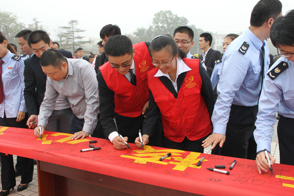經典集團組織志愿者參加兗州區弘揚社會正能量踐行核心價值觀暨千名志愿者啟動儀式
