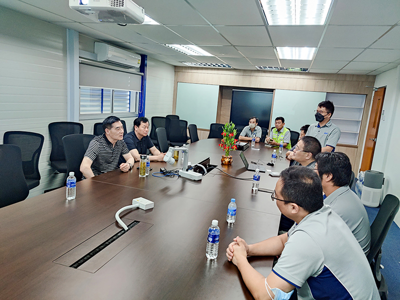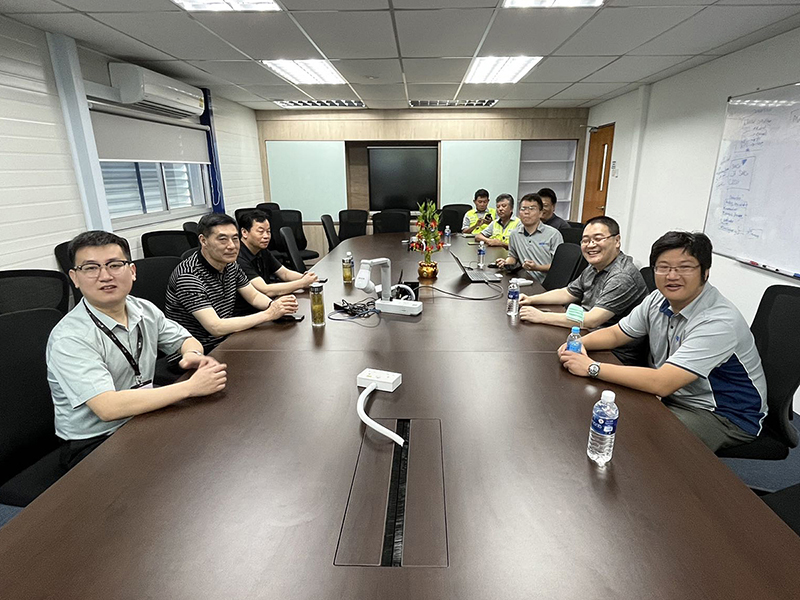 中國京冶建設(shè)工程(新加坡)有限公司執(zhí)行副總裁許亞男,執(zhí)行副總裁陳曉冬,鋼結(jié)構(gòu)高級運(yùn)營經(jīng)理翟東,鋼結(jié)構(gòu)運(yùn)營副經(jīng)理胡明陪同參觀座談。