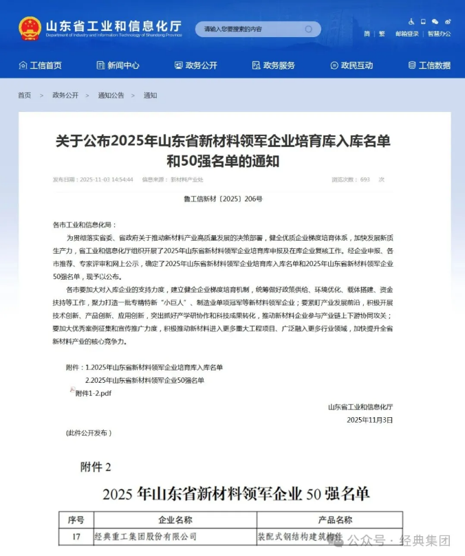 再度登榜!經(jīng)典集團(tuán)入選2025山東新材料領(lǐng)軍企業(yè)50強(qiáng)